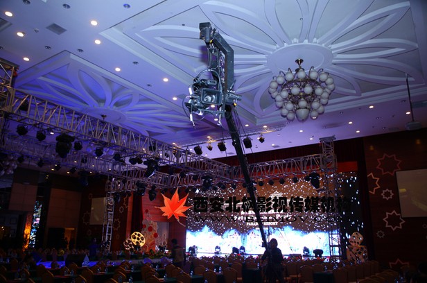 北枫影视工作人员晚会开始前调试摇臂中